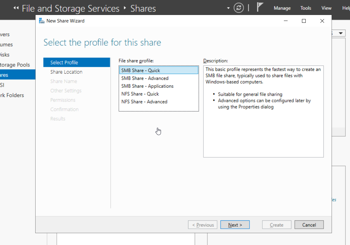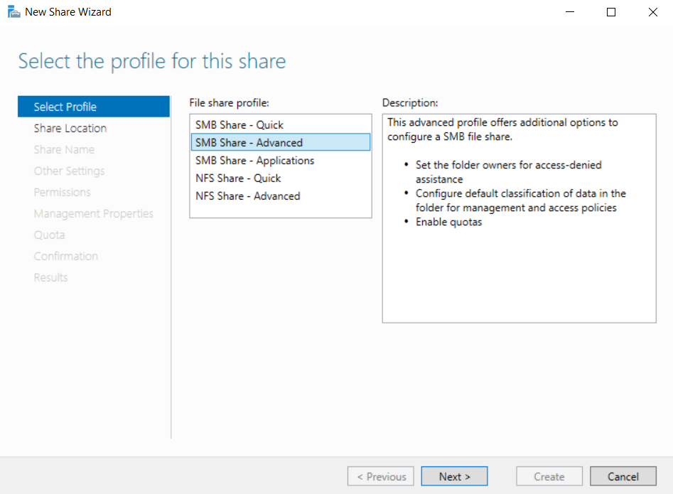 7. If you go back to file and sorage services and create a new ile share advanced, you will be able to