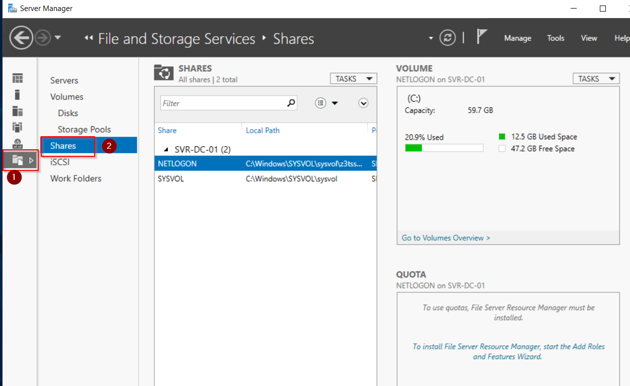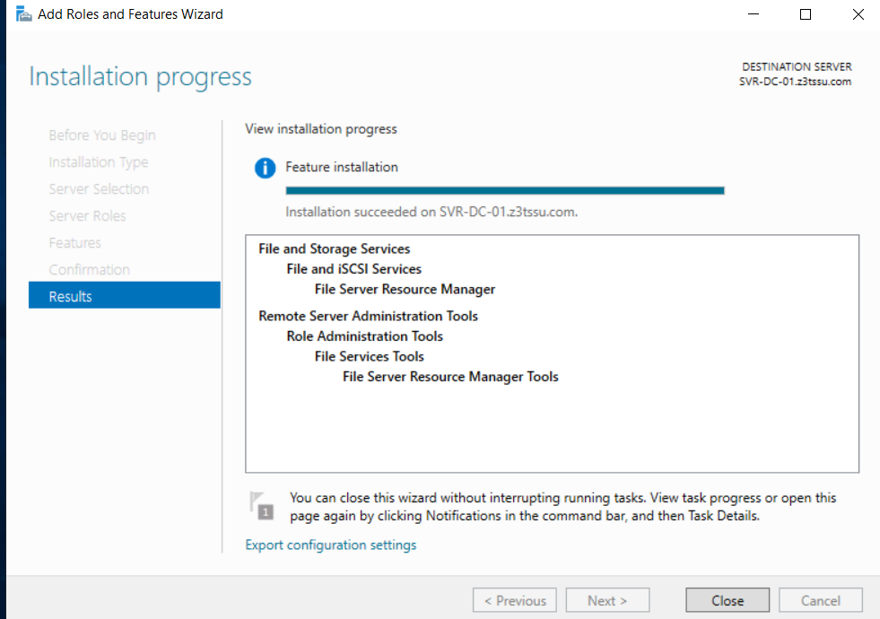 2. You will need to go back to roles and features and install the File Server Resource Manager under File and Storage Services&#x20;